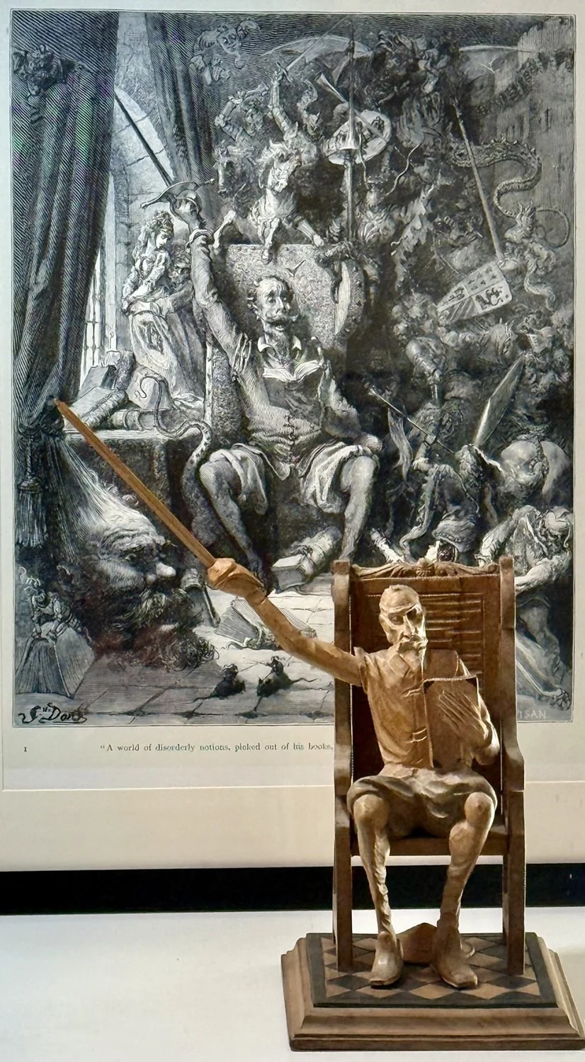 Welcome to our website! You are invited to explore with us the world of OURO Artesania wood carvings. The largest category of our collection is the series of wood sculptures depicting the characters Don Quixote and Sancho Panza from the Spanish novel Don Quixote by Miguel de Cervantes. But there also exist other bodies of work by the OURO Artesania studio such as religious figures; “genre” figures; bas-relief panels; odds and ends, like sailors and ducks for the souvenir trade; and finally, a special category of superb sculptures we call OURO Santiago.